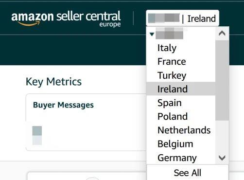 在现有的亚马逊欧洲账户下拉菜单选择爱尔兰,即可上架