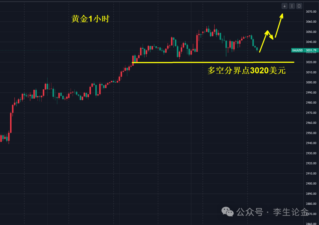 首先,自从周三金价站上3020美元之后,就一直围绕这里的支撑展开高位反复的洗盘,上涨有点力不从心,而下跌也不延续,并没有明显持续性的下跌。