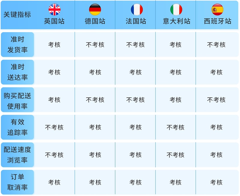 英、德、法三大站点,要求周六/日必须有1天能支持配送。