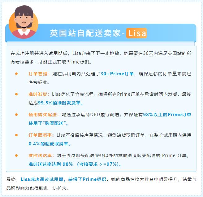 那么,如何在实际操作中顺利通过试用期?我们以英国站某家具品类卖家Lisa为例,看看她是如何高效运营,通过考核,最终成功获取Prime标识的吧。(虚拟案例,仅供参考)