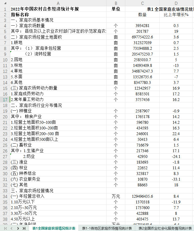 【数据】中国农村合作经济统计年度报表(EXCEL/PDF格式)2021-2023年