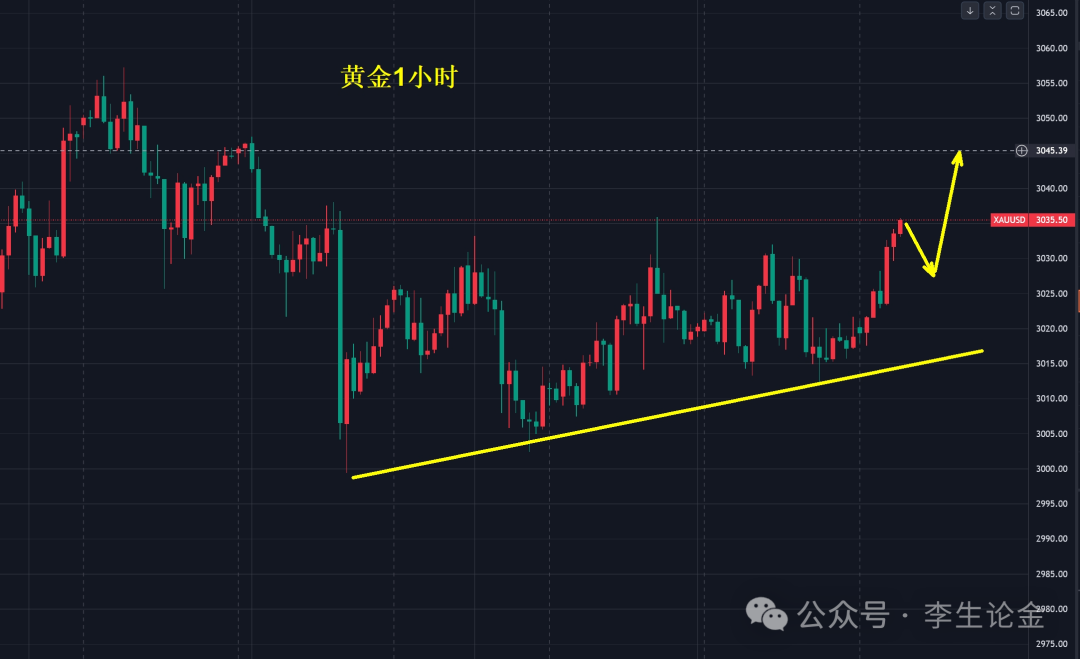 另外,市场缺的不是上涨的理由,只是借机有炒作的话题而已,无论关税的结果如何,黄金也将展开新的上涨,周线方面没有任何有调整的迹象 ,日线同样修正差不多了,3000美元以下套空的想等一个瀑布估计有点困难吧!