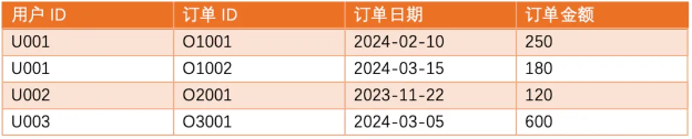 用户ID 订单日期 订单金额