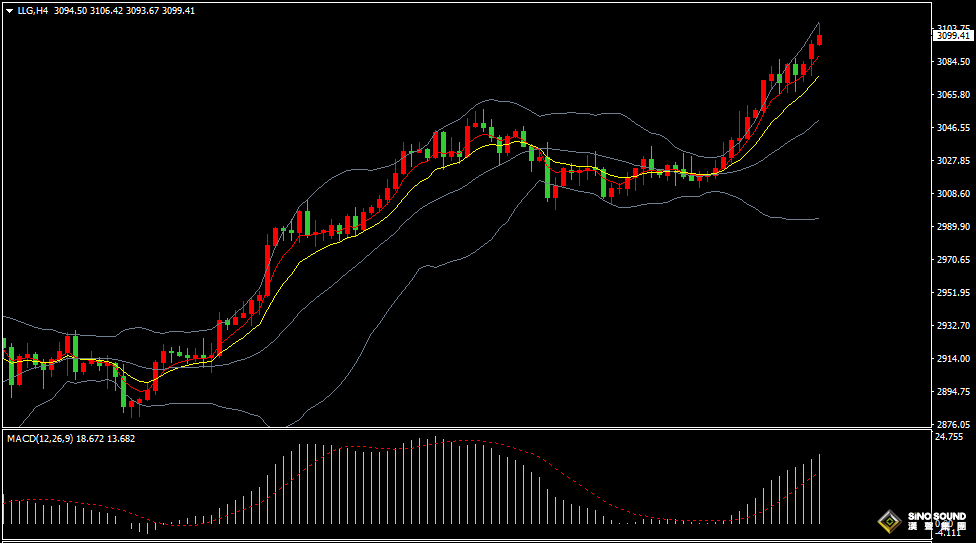 估计金价在3100关口附近争夺激烈,先看金价在3080-3110区间振荡运行,如突破该区间上行目标在3115,下行目标在3075-3070。