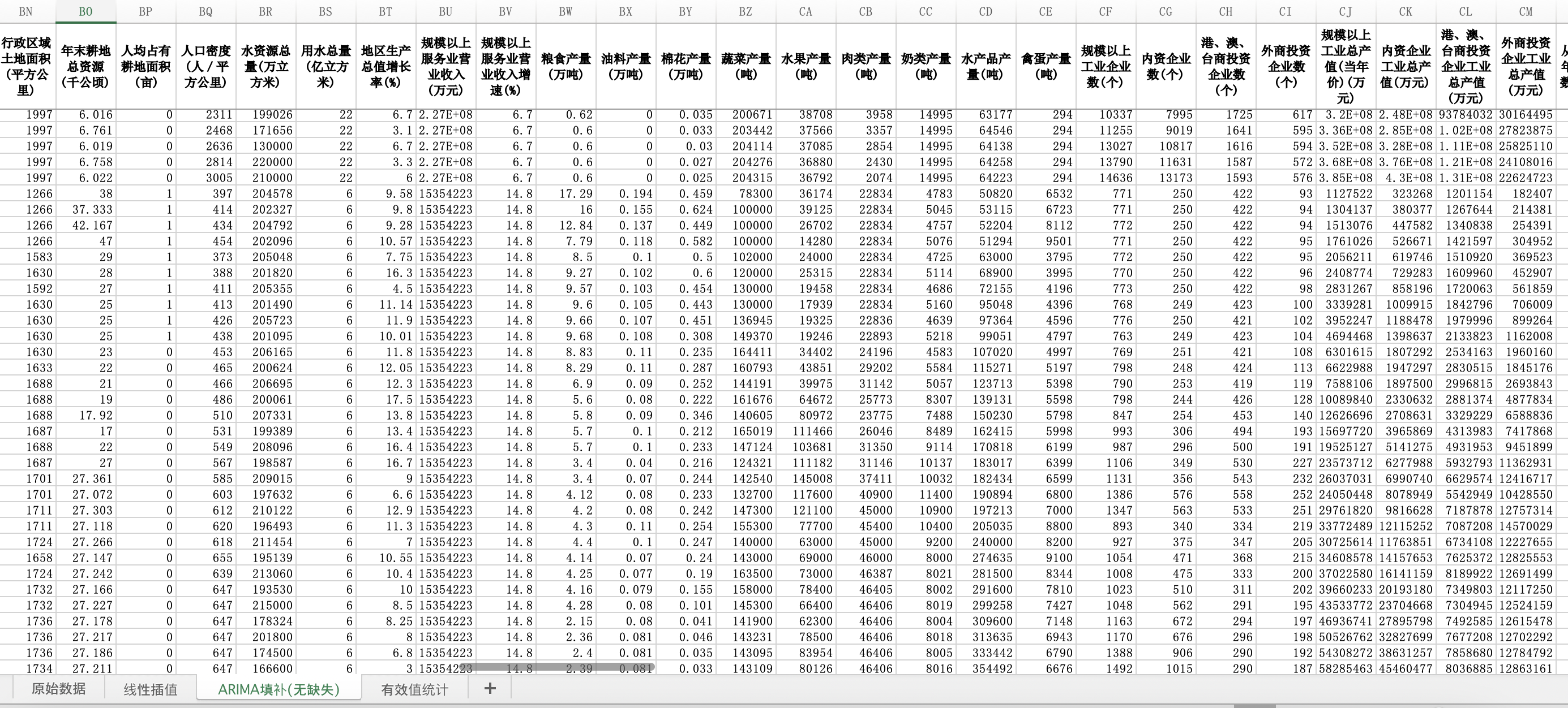 数据格式:Excel数据文件包含原始数据(由于多年度指标不同存在缺失值)、线性插值、ARIMA填补(无缺失)三个版本,提供您参考使用。其中,ARIMA填补无缺失值。