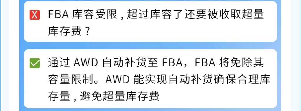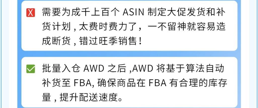 无库容限制:AWD库存可直接被买家搜索购买,旺季不断货。