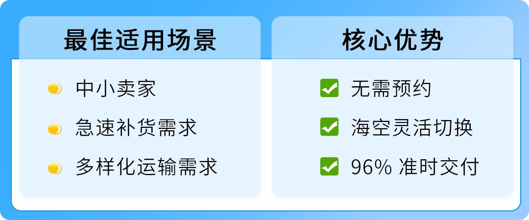 运输方式:起运量低,海空运互补可以满足卖家不同的发货需求。