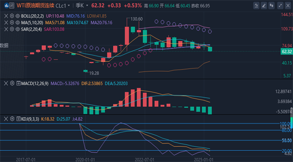 上周五(4月4日)美市盘中,国际油价弱势持续下跌,美原油目前交投于62.31美元/桶附近。国际油价周四遭遇"黑色星期四",创下三年来最惨烈单日跌幅。