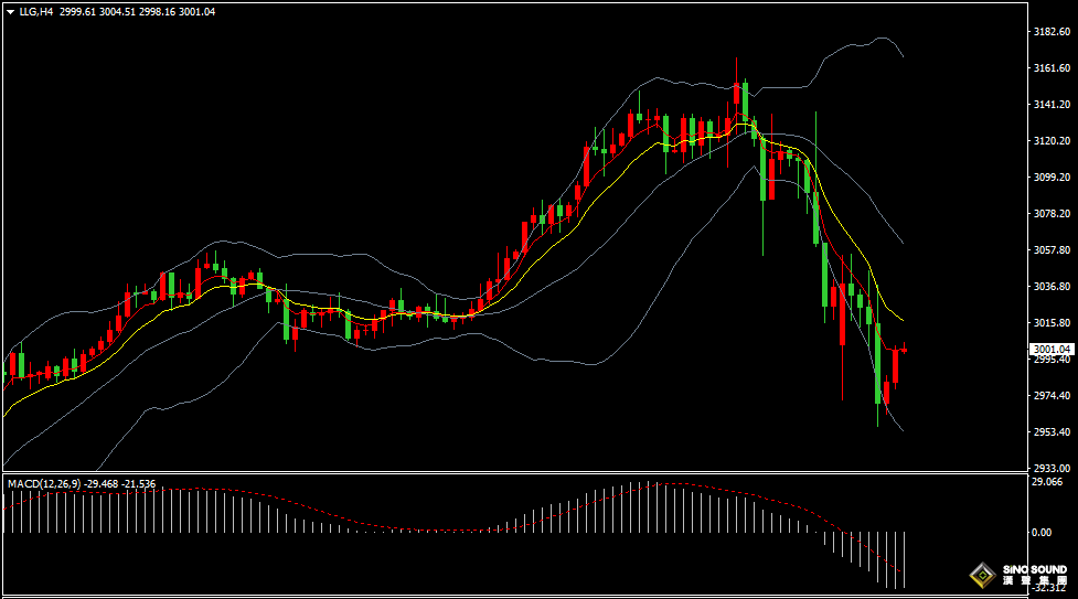 估计金价在2993-3012区间振荡运行,如突破该区间时,上行目标在3022-3030、下行目标在2985-2978。