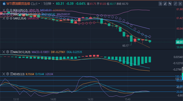 油价的连续下跌不仅反映了能源市场的短期波动,更折射出市场对全球经济系统性风险的深层担忧。关税政策的持续升级,令贸易担忧情绪从情绪层面蔓延至实际消费预期。昨天美盘原油一度上涨到63.7附近,收盘在61.0附近.说明原油市场的空头依旧的强势.从目前的盘面上来看,短期上方的阻力关注一小时布林带中轨和MA5均线交叉处61.1附近,向上偏差关注一小时布林带上轨61.8附近,更上方关注四小时布林带中轨62.6附近,下方支撑留意四小时SAR指标处59.3.向下偏差留意昨日地点58.8附近,更下方留意四小时布林带下轨57.2一线,.综合以上,今日原油以高位做空为主,低位做多为辅,原油策略:反弹61.2-61.5区间做空,61.7补仓一次,防守62.5.目标60.0-59.5下破持有;