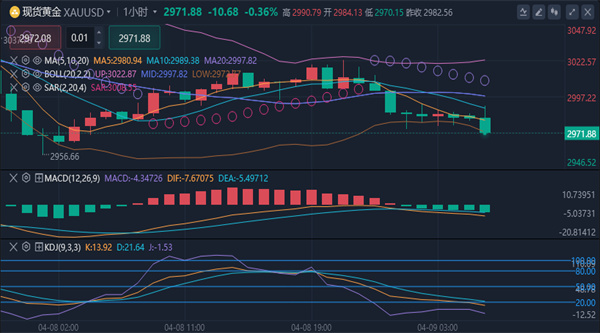 周三(4月9日)亚市早盘,现货黄金维持窄幅震荡,交投于2981美元附近。前一交易日,金价反弹受阻,盘中一度冲高至3022美元,但受美债收益率攀升及美股下跌拖累,最终回吐涨幅,收报2982附近。