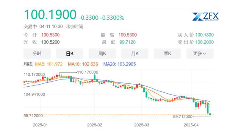 投资者担忧情绪重占上风,美股、美元这类美国资产遭抛售,避险资产瑞郎、日元、黄金全线上涨。4月10日,三大美股指一度至少跌超5%,标普500指数曾跌超6%、接近熔断。美国3月CPI公布后,长债收益率曾收窄升幅,两年期美债收益率降幅扩大、一度跳水超10个基点。