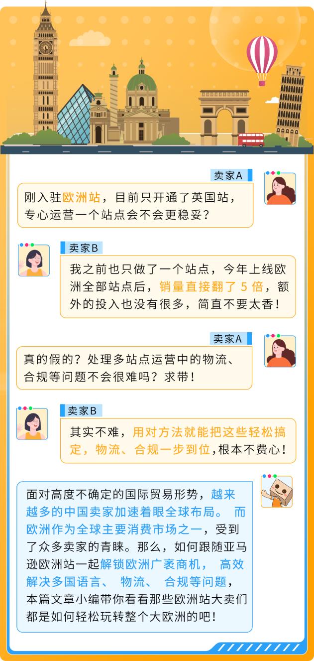 物流和合规的完美配合是制胜欧洲站的关键,现在,快来开启欧洲站多站点运营,实现您的销量飞升吧!