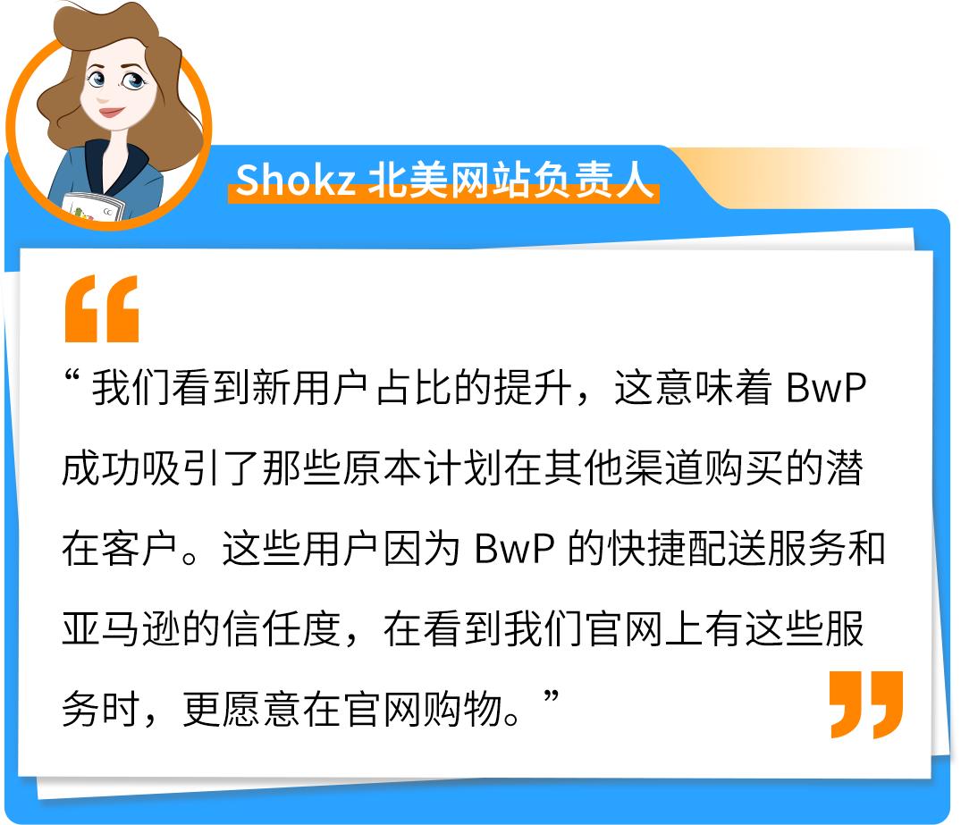 此外,在Prime Day活动期间,Shokz通过BwP处理的订单较平日高出15个百分点。BwP的便捷体验在品牌品牌官网上带来了强大的引流效果,巩固了官网的客户基础。BwP的流量导入功能将大量Prime会员的消费需求直接引导至Shokz官网,降低了潜在用户在其他渠道的流失概率。