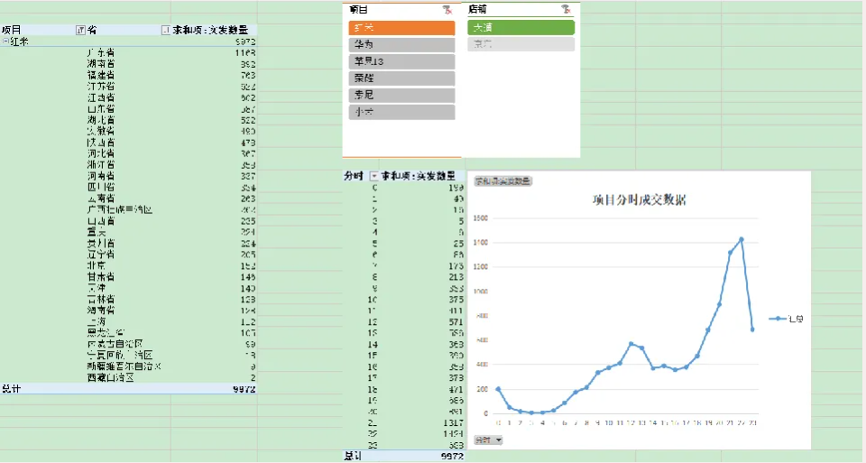 通过整合店铺同期销售数据、每日销售数据、不同渠道推广数据等,利用函数匹配和数据透视表,实现对店铺数据的实时监控。