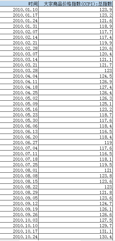 大宗商品价格指数(Commodity Consumer Price Index,简称CCPI)是一个滞后指标,也是通货膨胀的早期预警指标,能反映通货膨胀的程度。它是特定商品按价格加权计算的指数,反映在不同时点上的价格变动情况。