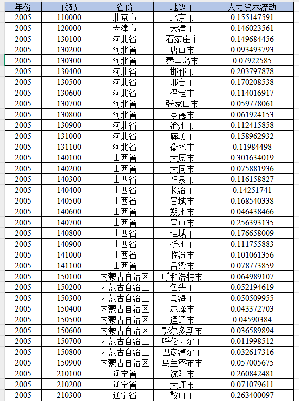 人力资本流动是指人力资本在工作地域和工作岗位方面的变动。这既包括人力资本在一国范围内的流动,也包括人力资本在国际范围内的流动。在地级市的层面,人力资本流动主要关注的是劳动力在不同地级市之间的迁移和变动。