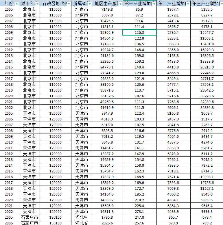 年份、城市名称、行政区划代码、所属省份、地区生产总值、第一产业增加值、第二产业增加值、第三产业增加值、第二+第三产业增加值、一般公共预算-税收收入-增值税收入_百万人民币、一般公共预算-税收收入-企业所得税收入_百万人民币、一般公共预算-税收收入-个人所得税收入_百万人民币、一般公共预算税收收入总和、 税收竞争。