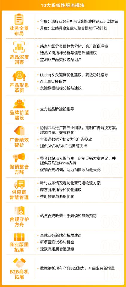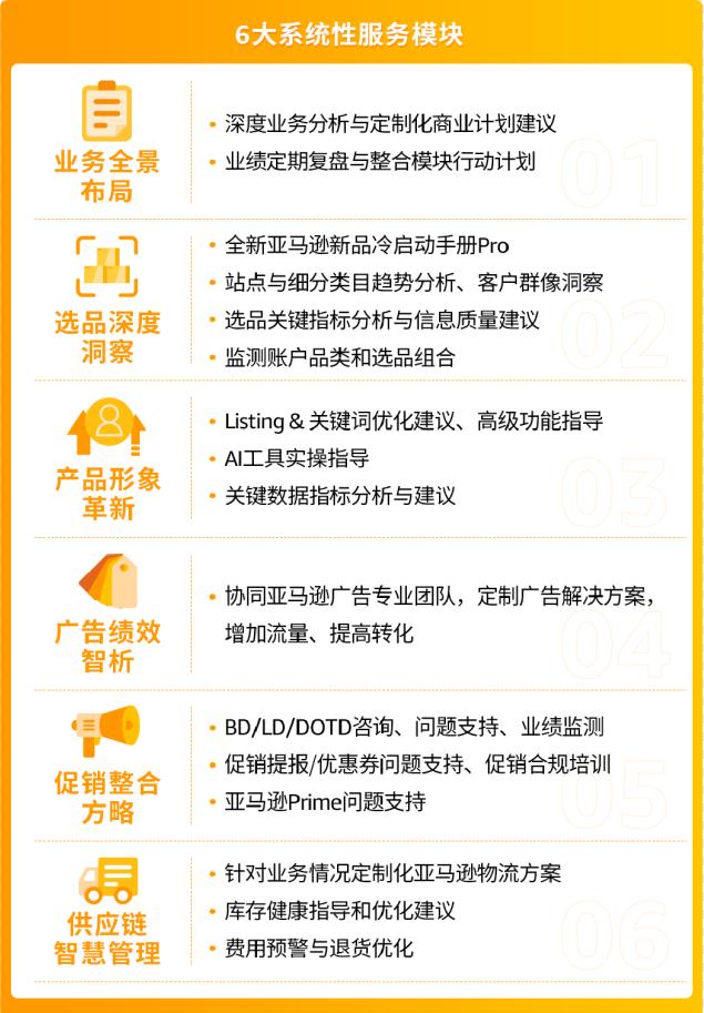 不仅能协助像Ken这样的卖家精准锁定高潜品类、挖掘机会点,亚马逊卖家成长服务还能提供全方位的定制化店铺运营支持。