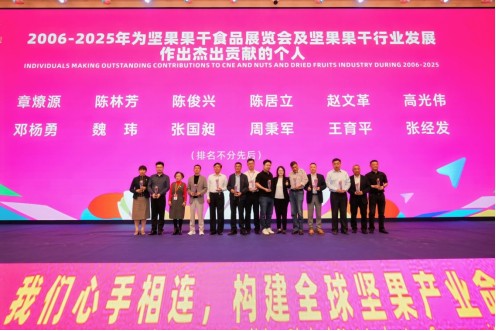 2025’第十八届坚果果干食品展览会开幕暨欢迎晚会让全球坚果果干同仁心手相连,汇聚全球坚果产业的精英力量,共同构建产业命运共同体,为坚果果干行业的繁荣与发展携手前行。特别值得一提的是晚会上颁发了“2006-2025年为坚果果干食品展览会及坚果果干行业发展作出卓越贡献的企业、单位和杰出贡献的个人”奖项,致敬中国坚果果干行业的每一位同仁。