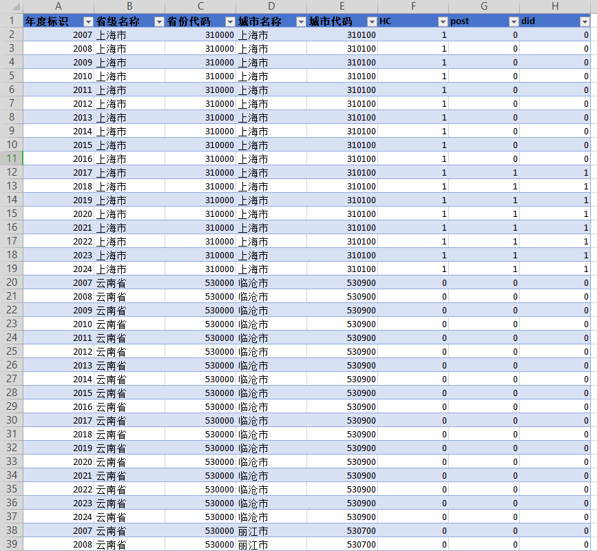 2007-2024年健康城市试点政策DID数据