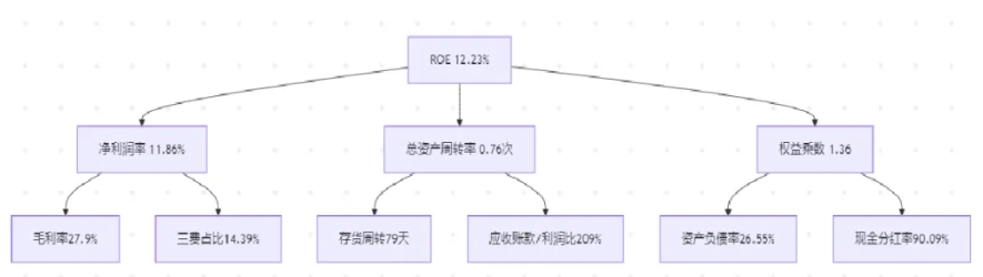 净利润率:净利润率来源于毛利率、三项费用占比以及销售收入。通过这些指标,我们可以计算出企业的净利润率。 总资产周转效率:这一指标包括应收账款周转天数和存货周转效率。这些指标反映了企业资产的运营效率。 权益乘数:权益乘数反映了企业的财务杠杆,包括资产负债率和净资产规模。通过这些指标,我们可以评估企业的财务风险和资本结构。