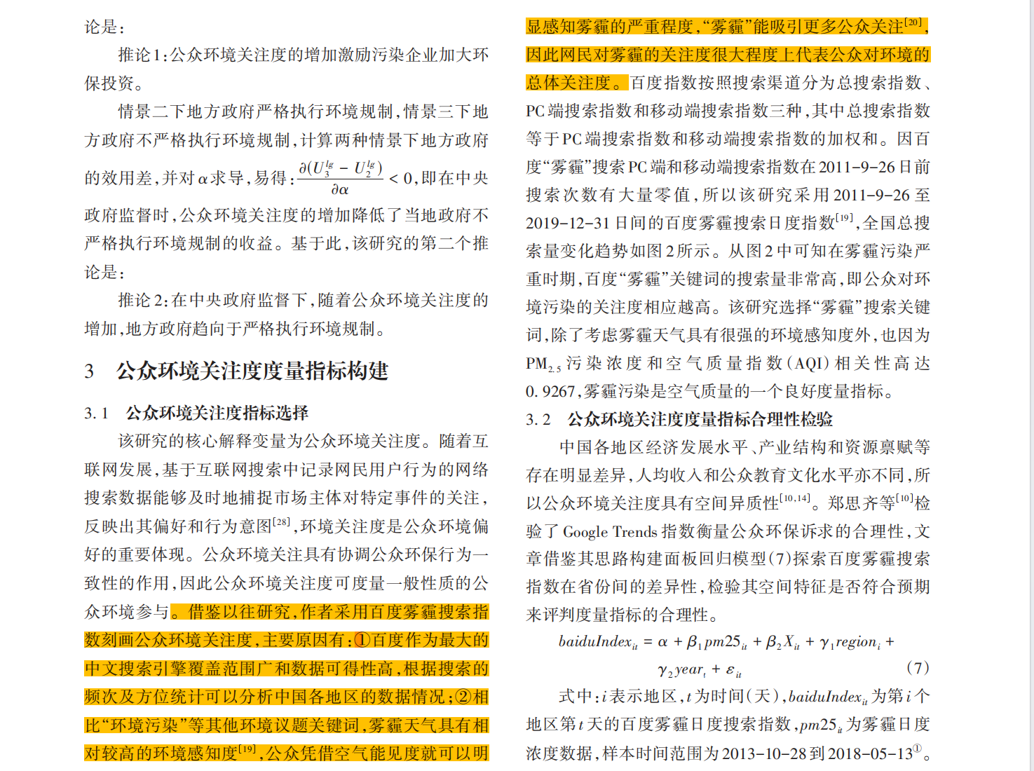 - 吴力波,杨眉敏,孙可哿公众环境关注度对企业和政府环境治理的影响[J].中国人口·资源与环境,2022,32(02)1-14.