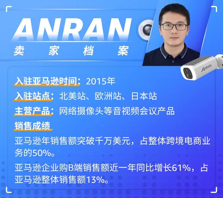 2015年,关键转折点到来—ANRAN抢先入驻亚马逊,将中国制造的成本优势与海外流量红利完美结合,迅速跻身摄像头品类的头部卖家行列。