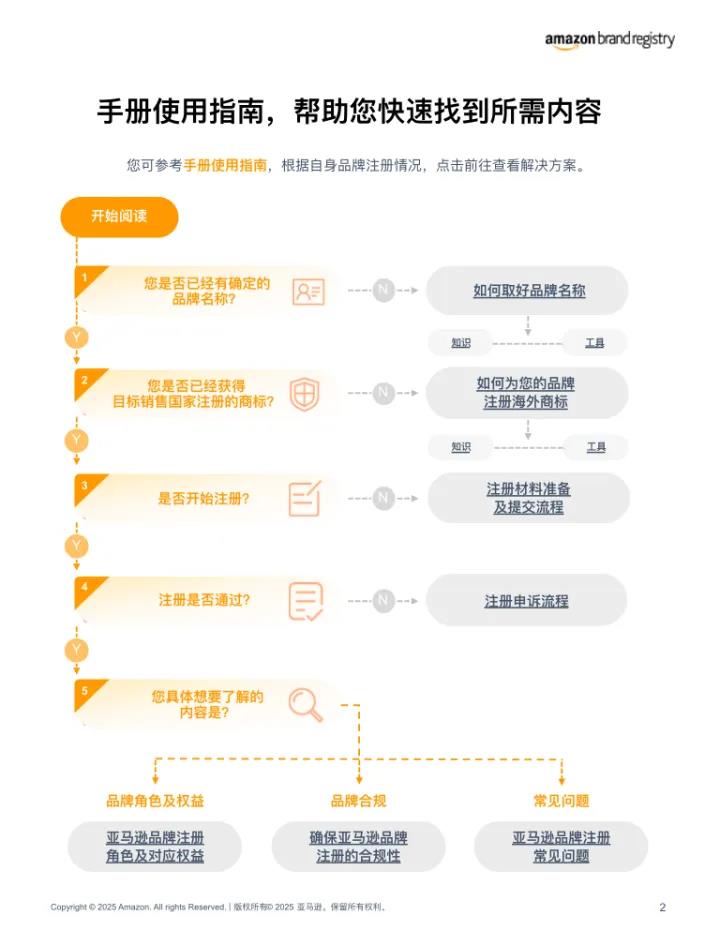 手册将卖家在品牌注册的各个阶段做了详细流程拆解,您可以根据当前所处的阶段一键跳转,让注册流程高效推进!
