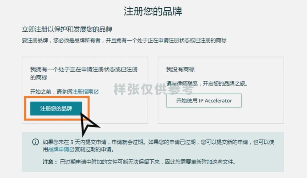 开始注册:进入亚马逊品牌注册后台,请点击“注册您的品牌”。
