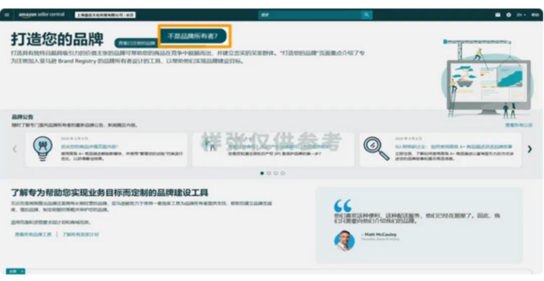 若您已是亚马逊卖家,您可以前往亚马逊品牌注册官网点击“注册您的品牌” ,推荐使用亚马逊卖家平台的账户和密码。用这种方式登录并完成品牌注册,对应的卖家账户能更快获得品牌打造与保护的工具权限;