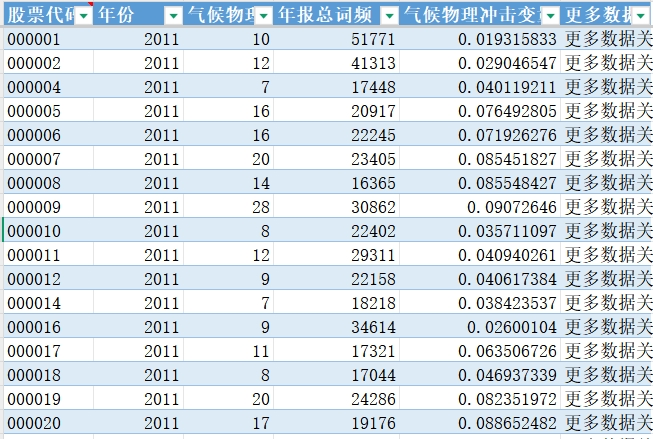 本数据参考王文蔚(2025)的做法,以企业年报中气候相关词频作为企业层面物理冲击程度的度量指标。气候物理冲击词典详见《世界经济》期刊该论文补充材料附录二。我们严格按照论文所示如下步骤获取数据: