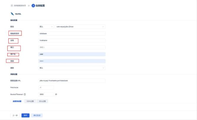 在FineBI中配置数据连接,连接到先前搭建的数据仓库(如MySQL)。