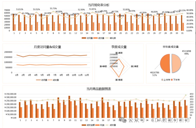 这些图表帮助运营负责人掌握销售状况,为备货计划提供数据支持。