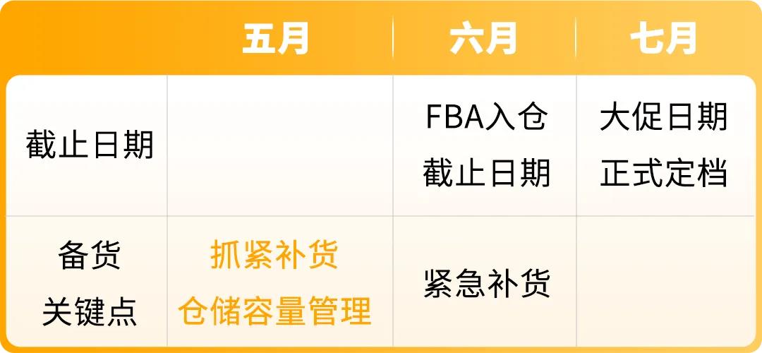 争分夺秒!Prime 会员日决胜时刻来临 ——五月 Deals 提报截止、六月 FBA 入仓大限,已进入倒计时,每个节点都决定爆单成败!速看下方时间表,抓紧规划行动!