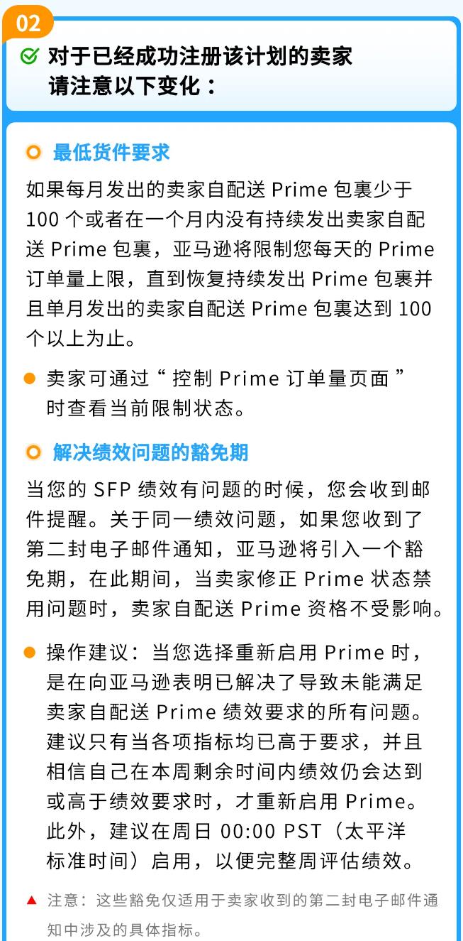 亚马逊每周都会审核卖家的优先配送绩效(从周日到周六),并将卖家自配送Prime订单排除在评估范围之外。