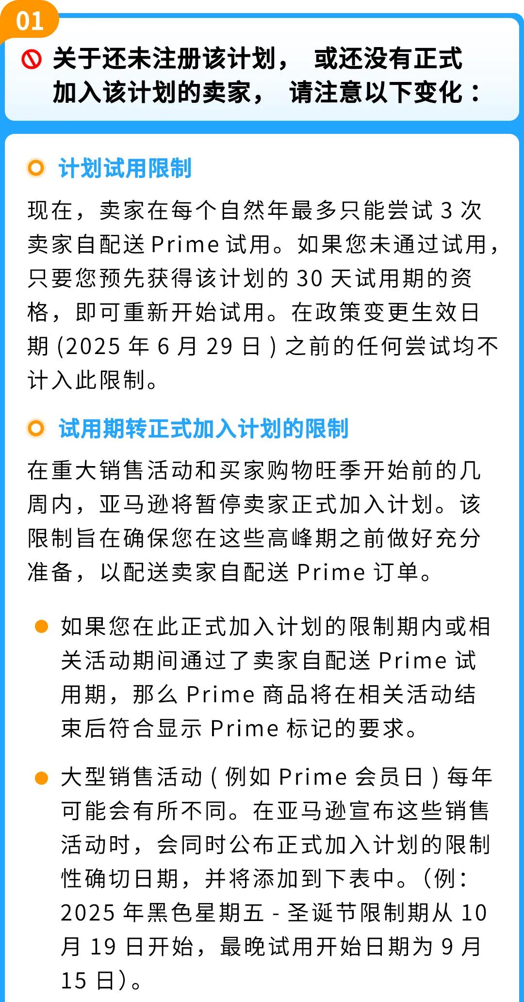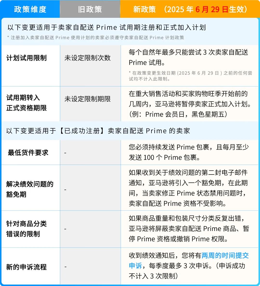 2025年6月29日起,亚马逊对美国站卖家自配送Prime的注册、运营规则进行了细化更新。