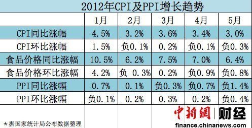 国家统计局上月公布的数据显示,2012年5月份,全国居民价格总水平同比上涨3%,低于3.2%的市场预期,创下自2010年6月之后的新低。