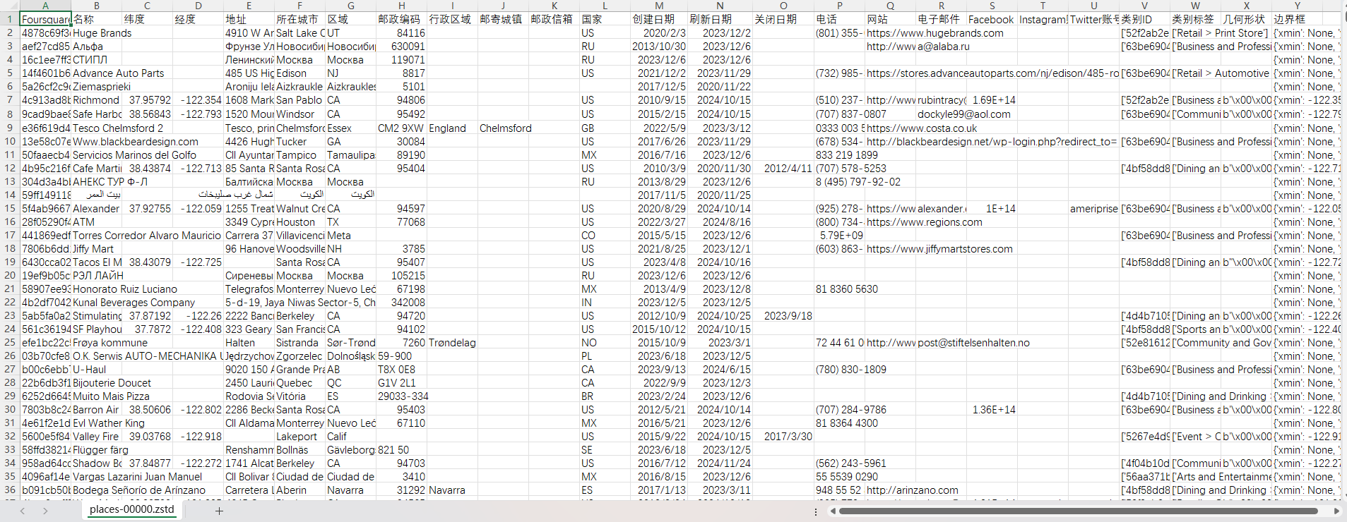 POI数据集是一种结构化的地理信息集合,涵盖了体育与娱乐、餐饮、零售、艺术与娱乐、商业与专业服务、健康与医疗、地标与户外、社区与政府、旅行与交通、活动及夜生活场所等各类场所。来自Foursquare 平台,包括2003-2024年全球各国的兴趣点数据,样本总量1亿+