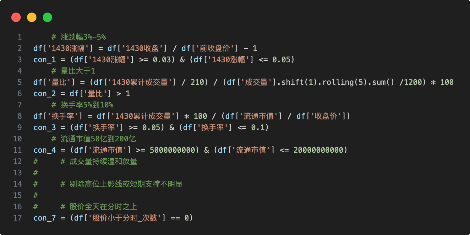 这个所谓一夜持股法的精髓,就是在14:30选出以下特征的股票买入,并在第二天开盘卖出即可。