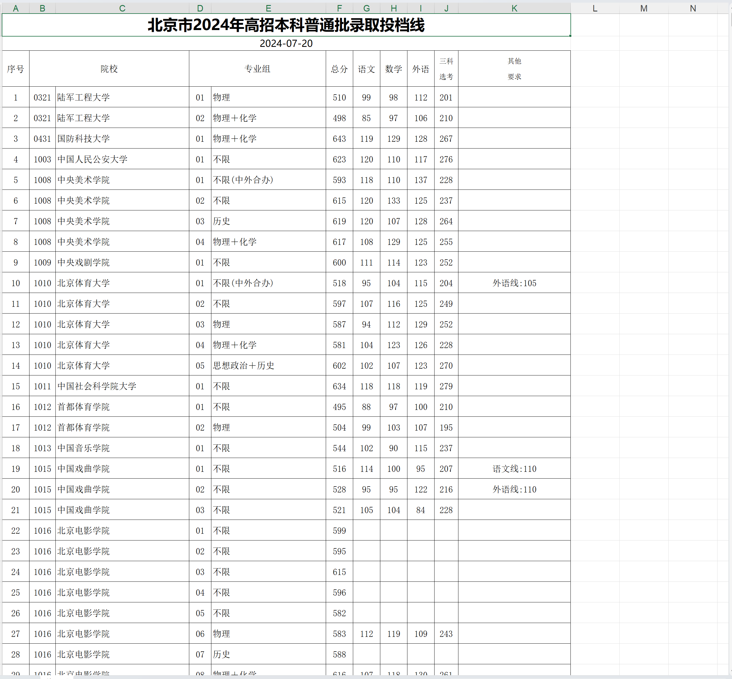 高校专业分数线