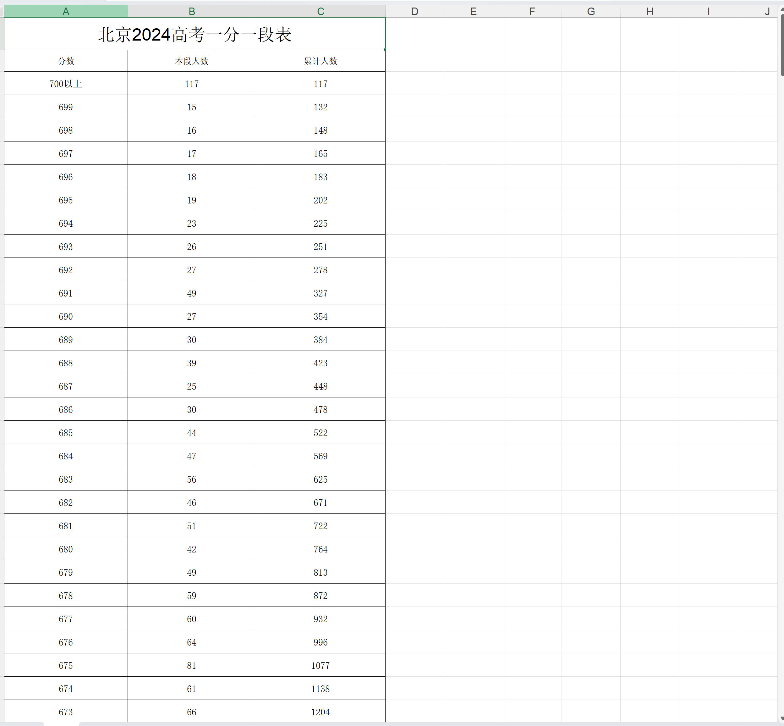 高考一分一段表