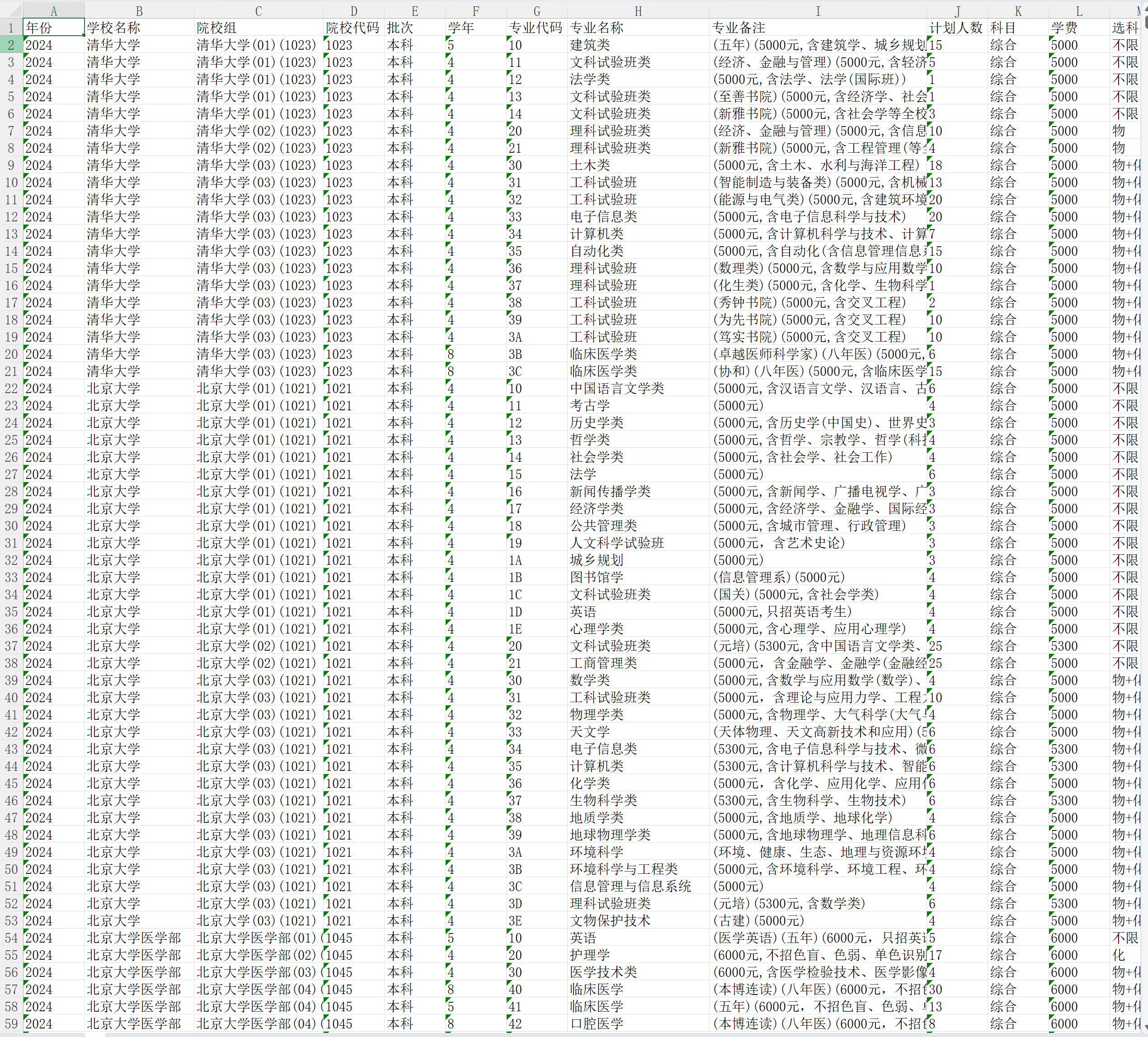 【最新】中国高校各专业录取分数线、招生计划、分段表数据(2008-2024年)