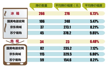 京东商城数据显示,上午11点前,京东的商品均价为3496元,相比10时下降53元;苏宁商品均价为3298元,相比上午10时下降22元。1小时内,京东调价19%,苏宁调价17%,京东商城认为,在上午时段已方略胜一筹。