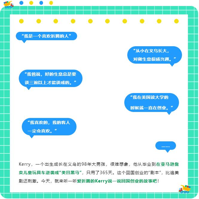 谁说厂二代只能继承?Kerry回国的365天拒绝在家族工厂躺平,在儿童大型玩具赛道上闯出了自己的一片新天地。Kerry说:“很多人问我,家里有工厂,为啥不直接躺平?但我觉得,从美国代购到亚马逊卖家,这一路“折腾”才是最酷的事。我也希望像我爸一样,往前干,勇敢地干,努力往前冲,什么都不要怕。”在下一个365天,他们还将继续发力IP联名、社区口碑、产品创新、售后升级等,在跨境道路上一往无前。