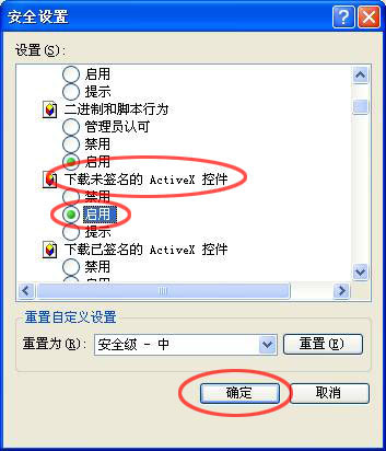 1、打开浏览器“Internet选项-安全-自定义级别”,在弹出的窗口中把“下载未签名的ActiveX控件”设置为“启用”,并且把里边有关ActiveX控件项的所有选项全改为“启用”,重新打开浏览器,看能不能用。