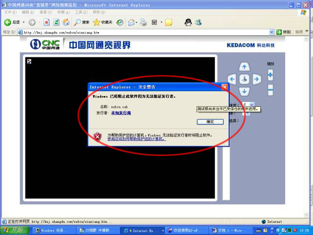7、回到某地市的网络演示页面,刷新浏览器页面,按照第1部,单击安装“ActiveX控件”,就可以正常安装、不会被windows阻止了;
