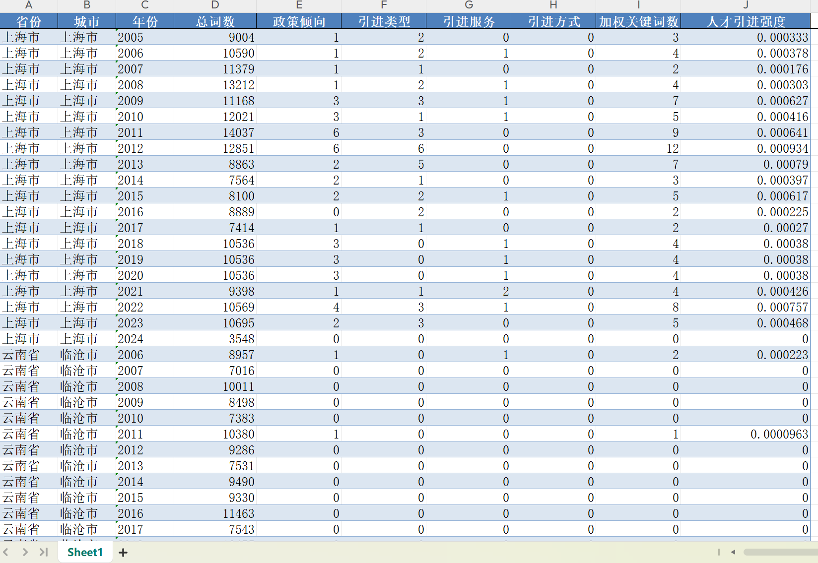 一、城市人才引进强度数据的介绍