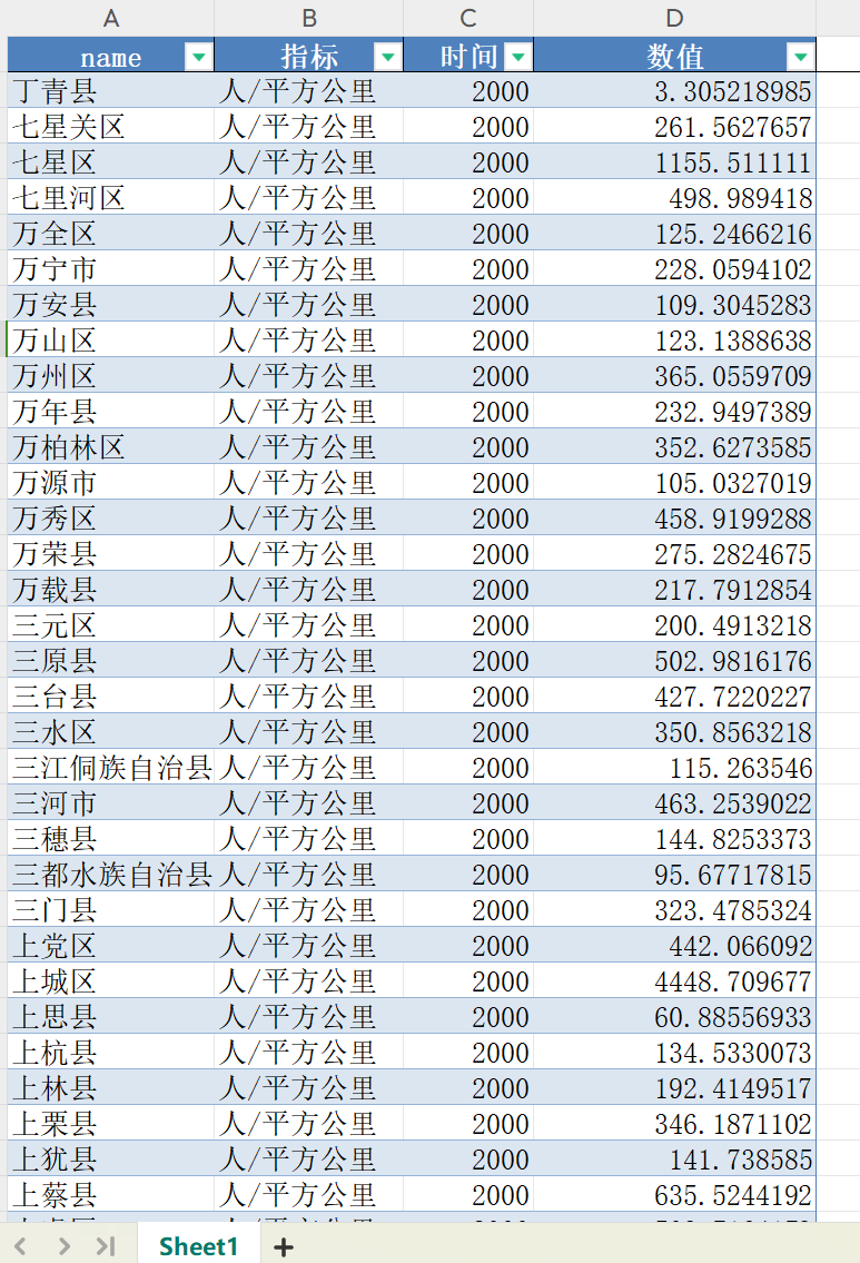 [经管数据集] 中国省市县-人口密度数据(2000-2023年) |