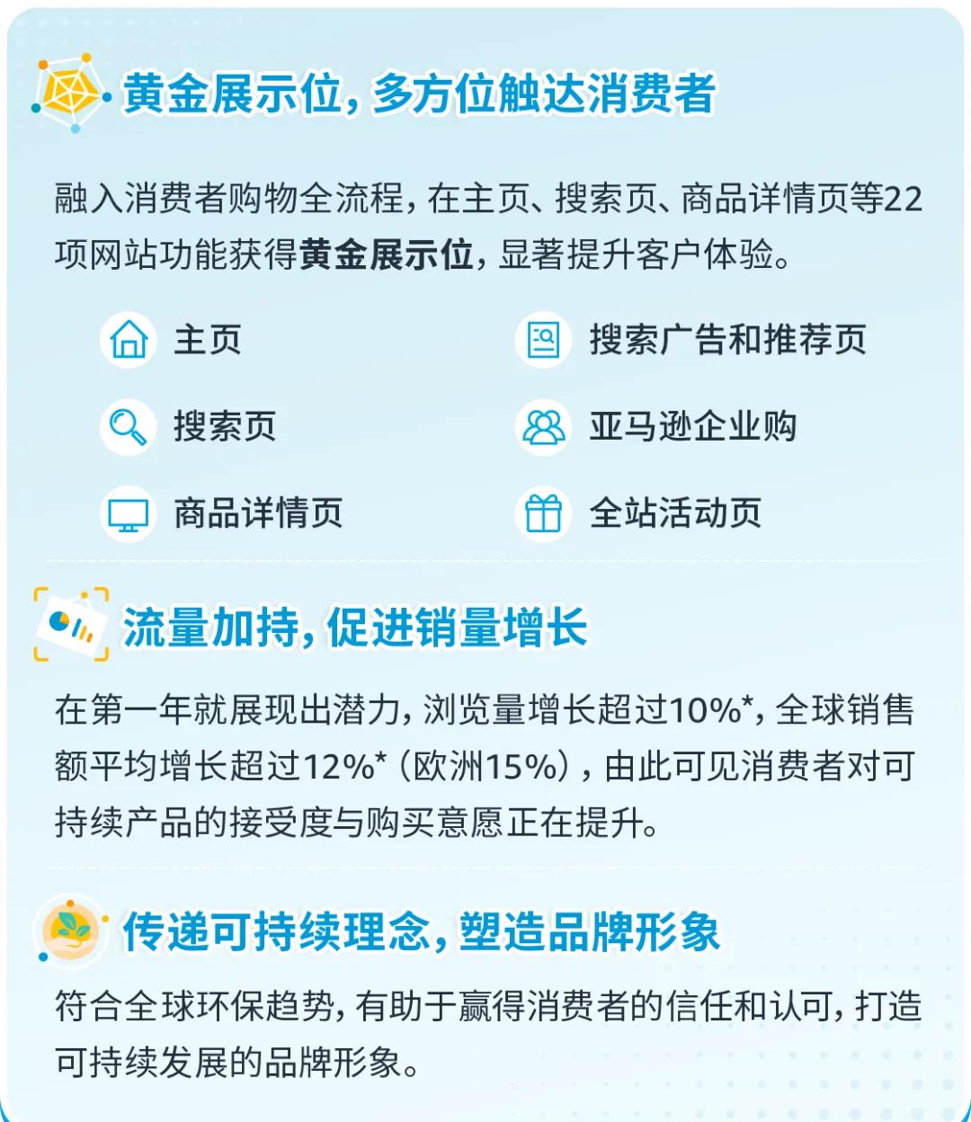 对于大多数消费者来说,选购产品不再局限于产品质量,是否环保也逐渐作为考量因素。为了帮助卖家抓住绿色经济商机,满足消费者对可持续产品的需求,亚马逊气候友好承诺计划(Climate Pledge Friendly,简称CPF)应运而生。
